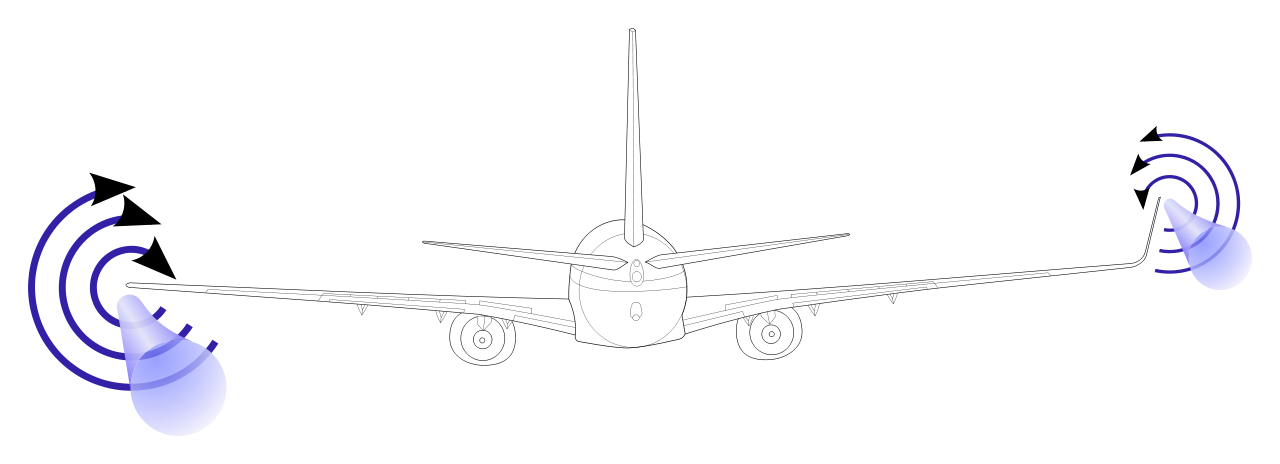 لا ألوم من قال أن ذلك الشيئ للشكل فقط فهو حقا جميل لكن يجب معرفة كيفية عمل الجناح لنعرف ما هو الشيئ الذي بآخره و ما هي فائدته، يسير الهواء من فوق و من أسفل جناح الطائرة و بسبب إنحناء الجزء الأعلى منه يتم توزيع الهواء في المنطقة العليا (كونها أكبر) أكثر منه في المنطقة السفلى و ذلك ينتج ضغط أقل في المنطقة العليا من المنطقة المنطقة السفلى، و ينتج عن ذالك القوى التي ترفع الجناح، الآن، الأمر يسير كما ذكرنا على سائر مساحة الجناح حتى الوصول لآخر نقطة فيه، النقطة التي في أقصى جانب من الجناح، و فيها يلتقيان الهواء الذي في أعلى و أسفل الجناح، و عند نفطة اللقاء تتكون ما نسميه ب”الدوامة” وهي عبارة عن طاقة مفقودة قوية لدرجة أنها ممكن أن تقلب طائرة أخرى إذا مرت فيها، و هذا ما ذكرناه في موضوع “الإقلاع” (إقرأه في المدونة) و سنتحدث عنه مزيدا في الهبوط.