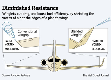 الدوامات تسبب قوة سحب للطائرة، و كأن هناك شيئ يسحبها من الخلف عند طيرانها، مما سيحتاج لقوة دفع أكبر معاكسه لتتمكن الطائرة للطيران قدما، و لزيادة قوة الدفع يجب زيادة قوة المحرك مما يسبب زيادة في حرق الوقود، و هنا يأتي أكبر إهتمام، فالوقود يلعب دور كبير في عالم الطيران و أول سبب في خسائر شركات الطيران، فكرت شركات تصنيع الطائرة بكيفية التخلص من الدوامات التي تسبب قوة السحب ليتم توفير الوقود، و النتيجة هي تلك “الجنيحات” و بالإنجليزي تلفظ وينج ليتس أو ما تسميه إيراص ب شارك لتس (نسبتا لزعانف القرش) و تلك الجنيحات تعمل ببساطة على تقليل التصادم بين الهواء من فوق و أسفل الجناح و عليها تقل قوة السحب و تقل القوة المطلوبة من المحرك و ثم يقل صرف الوقود.