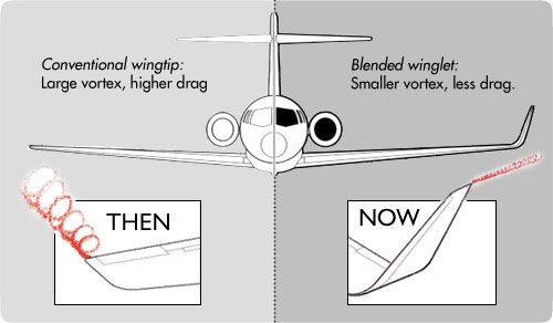 تأثير وجود القطعة المطوية يترجم إلى توفير وقود وزيادة مدى الطيران وتحسين استقرار الطائرة. تعتبر قطعات الطرف المطوية جزءًا من التقنيات الحديثة في تصميم الطائرات التجارية لتحسين الأداء الجوي والاقتصادية.