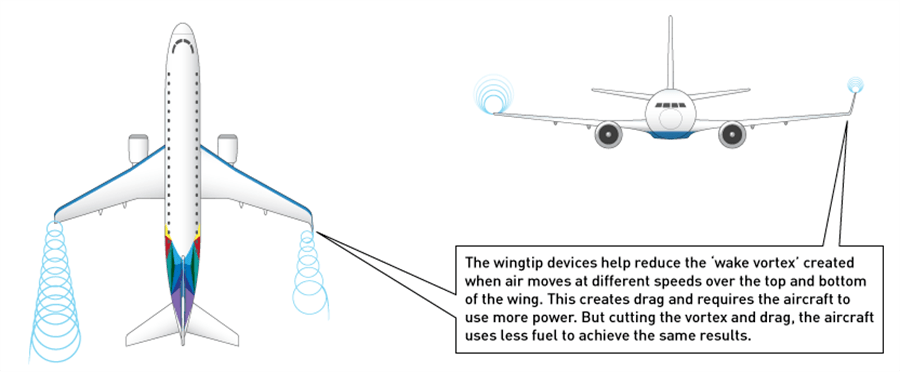 القطعة المطوية التي قد توجد في طرف الطائرات التجارية تعرف باسم “winglet” أو “sharklet”. تم تصميمها لتكون قطعة صغيرة ومائلة على طرف جناح الطائرة.
