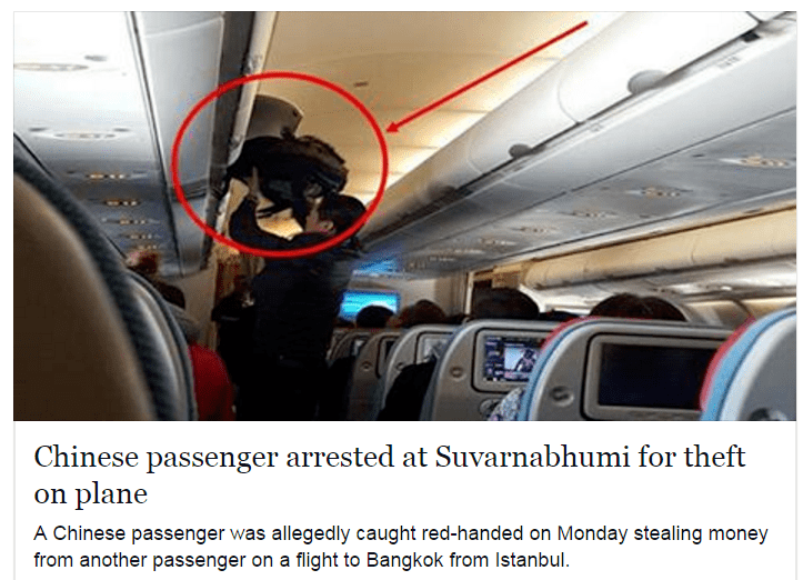 تنتشر سرقات عديدة منذ زمن في الطائرات و الفاعل دائما ما يكونون من الجنسية الصينية في جميع انحاء العالم و شركات الطيران و قد تم القبض على العديد منهم لكن ما زال سبب وجودهم في الطائرة غير معلوم هل النية السرقة فقط ام هي حجه و حاجه!